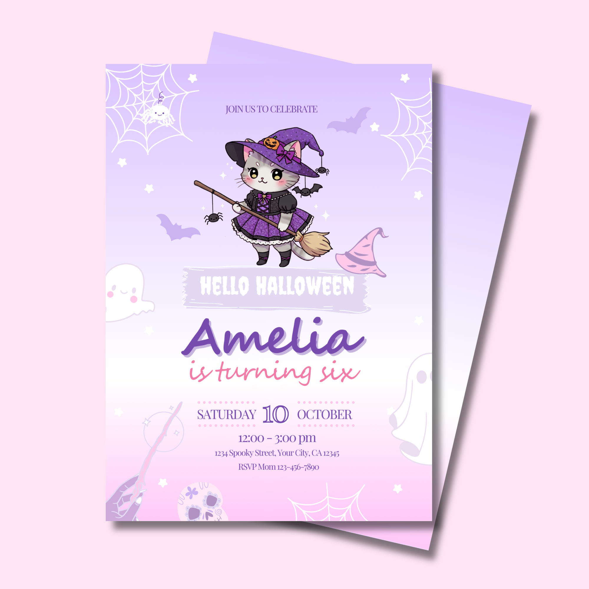 Cat - Let’s Roll! Roller Skating Birthday Invite Editable, Kawaii Party Invitation, Roller Skates Party Invite Printable, 5x7 Hand Drawn