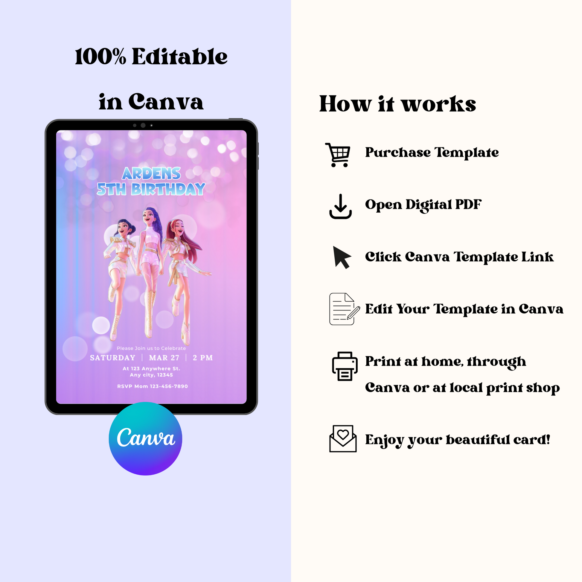 Related Words: kpop birthday invitation, kpop party invite, pop star birthday invitation, editable kpop invite, girls music birthday party, kpop concert birthday printable, digital kpop invitation template, kpop theme birthday decor, kpop editable birthday card, music concert birthday invite, demon hunter, huntrx