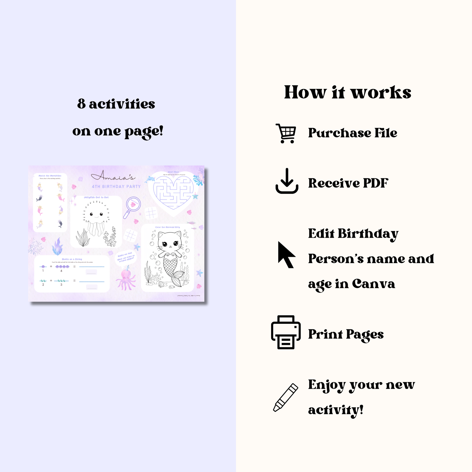Please note: Only the birthday text (name, age) at the top of the activity sheet is editable. Thanks for understanding.